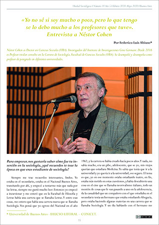 «Yo no sé si soy mucho o poco, pero lo que tengo se lo debo mucho a los profesores que tuve». Entrevista a Néstor Cohen