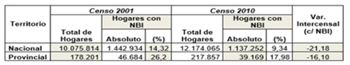 Es conocida la reducción de las Necesidades Básicas Insatisfechas experimentada en los últimos periodos censales 2001 y 2010, esa mengua resulta una buena noticia, pero permanece rodeada de interrogantes ya que, en términos de sostenibilidad, son altas las probabilidades de que esté vinculada sobre todo al ciclo económico y, por lo tanto, sea susceptible de revertirse fácilmente en el corto plazo.