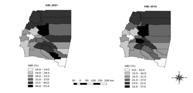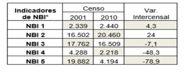 [16] Sin embargo, es interesante que en relación al descenso de las NBI se dio sobre todo en los indicadores no vinculados a la vivienda, sino a educación y baja capacidad de subsistencia.