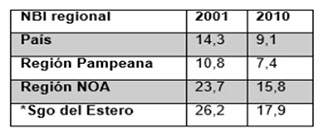 Por último, resulta preciso destacar otro aspecto sociodemográfico -económico- importante para tener una visión general de las peculiaridades del territorio en conjunto, así como también el mercado laboral santiagueño: las Necesidades Básicas Insatisfecha [9] (NBI en adelante).
