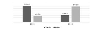 Claramente, la población masculina en edades laborales desciende entre los años 2001-2010, y la participación femenina se incrementa. Esta es una tendencia que Zurita afirma “[…] se manifestó en las dos últimas décadas en Latinoamérica y, más tempranamente, en los países industrializados, (1999, pág. 75), es decir que -como pocas veces- la provincia no quedó exenta de este fenómeno demográfico global.